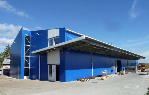Irodablokkot magában foglaló lakatos és porszóró üzemcsarnok engedélyezési és kiviteli terve.